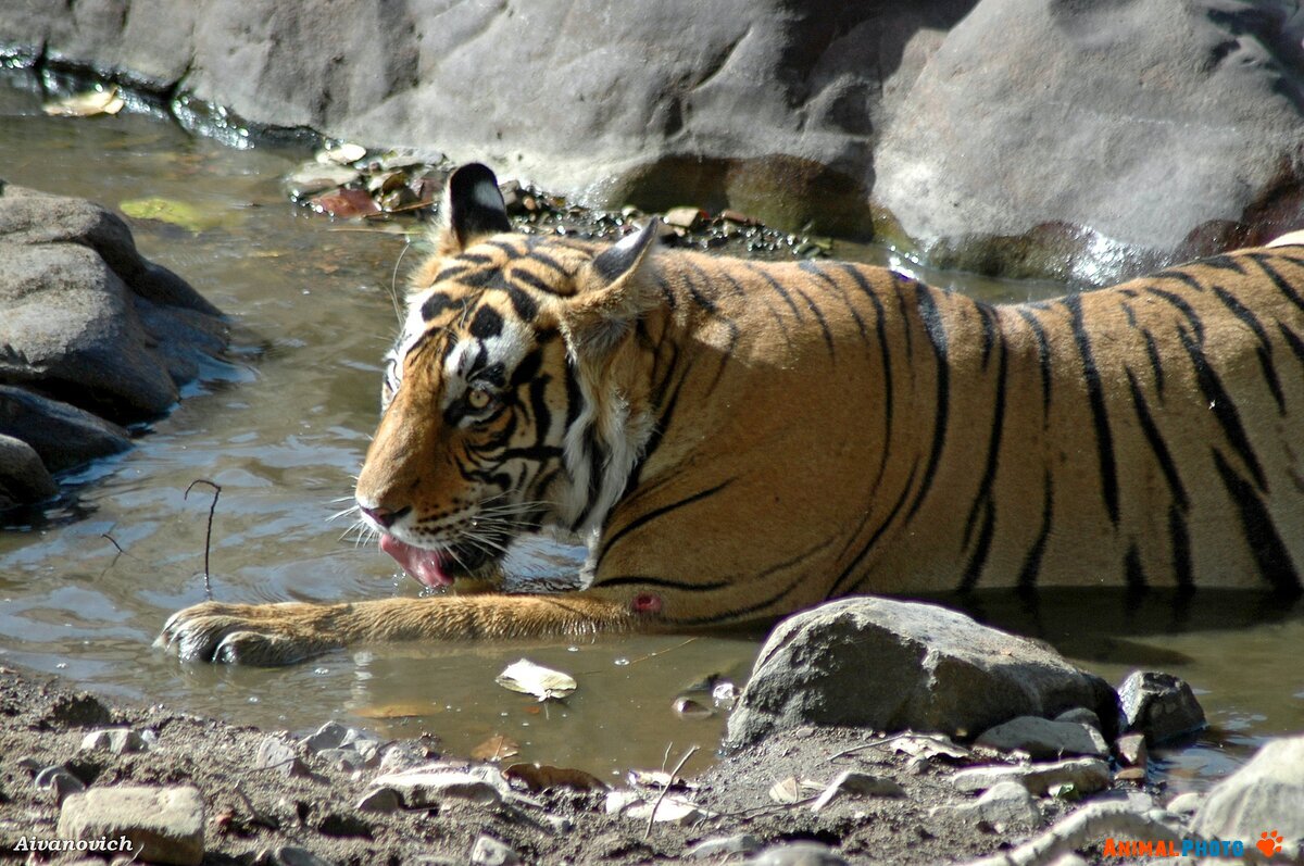Индия. Заповедник Ратамбор. Тигр на водопое.