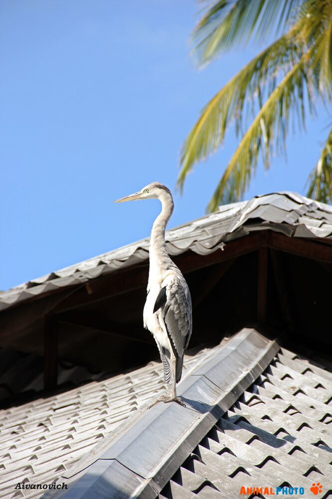 Мальдивы. Остров Кудафолуду. Цапля.